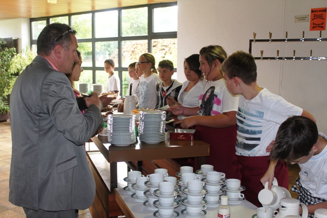Am 13.09.12 durften wir, die Klasse 7 der GWRS, bei der Einschulung der Erstklässler bewirten. Ab 13.00 Uhr bauten wir die Tische und Stühle auf. Anschließend richteten wir Kaffee, Kuchen, Brezeln und andere Getränke her. Alle mussten kräftig anpacken. Vor allem in der Pause standen viele Personen an. Nach dem Aufräumen waren wir geschafft und froh, dass wir den Tag gut überstanden hatten. Da wir aber einiges für unsere Klassenkasse eingenommen haben, freuen wir uns schon auf unseren nächsten Auftrag.