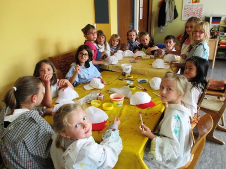 Jeder Tag startete mit einem gemeinsamen Frühstück und einer kleinen Geschichte. Danach wurden diverse Aktivitäten angeboten. Von Gipsmasken herstellen und gestalten über Seifengießen, Textilien bemalen, Olympiade, Detektivralley, Kinderdisko Töpfern, Kochen und Backen war alles mit dabei.