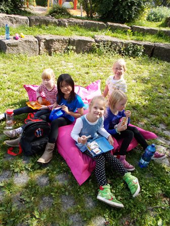 Nach den Aktivitäten haben die Kinder sich bei einem gemeinsamen Vesper, selbstgebackenen Waffeln oder Kuchen gestärkt. Somit hatten alle wieder genügend Power, um die Tage beim Toben im Bauraum oder auf dem Schulhof ausklingen zu lassen.