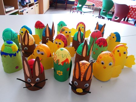 Die Leiterin der Ganztagesbetreuung Anja Maier und die FSJ-lerin Aileen Röhrig, haben das vielseitige Programm vorbereitet und gestaltet. Natürlich wurde das Programm auch auf die Osterzeit abgestimmt. Jeder Tag startete mit einem gemeinsamen Frühstück und einer Ostergeschichte.
