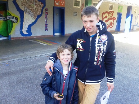 Dabei gingen die Kinder in drei Gruppen von Station zu Station. Bei jeder Station gab es ein Rätsel zu lösen, um den neuen Wegepunkt herauszufinden. Am Ende der spannenden Tour kamen alle Gruppe zurück zur Schule, bei der eine kleine Überraschung auf sie wartete.