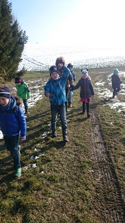Am Mittwoch den 09. März 2016 machten sich 20 Kinder, zusammen mit Thomas Pfister vom Albverein, zu einer Wanderung im Rahmen der Mittwochsaktion auf. Mit festem Schuhwerk und warmer Kleidung starteten die Kinder motiviert von der Schule aus quer durch Villingendorf, weiter am Waldrand entlang, um anschließend wieder in die Schule zurückzukehren. Die Kinder hatten dabei viel Freude und Spaß. Zudem zeigte sich das Wetter von seiner etwas besseren Seite, was ebenso zu einem schönen und harmonischen Miteinander beigetragen hat. Die Bewegungsfreude der Kinder wurde durch die Abenteuerwanderung bestens bedient.