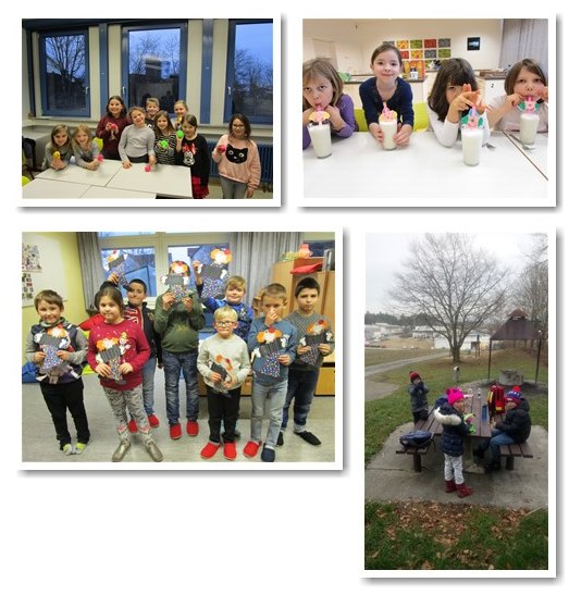 Die Gesundheit- und Wellnessgruppe stellte selbstgemachte Anti-Stressbälle her und beim Winterspaß wurden aus Keksen, Mandeln und Zuckerguss essbare Kerzen hergestellt. Außerdem gab es eine abenteuerliche Wanderung zum Bergwald mit unserer neuen Erzieherin Diana Rocks, welche wir ganz herzlich bei uns im Ganztag begrüßen. Wir wünschen ihr weiterhin viel Spaß und viele weitere Aktionen.