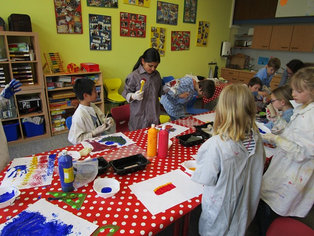 Am Montag, 09.04. 2018 in der AG Kunterbuntes Treiben gestalteten die Kinder mit Alltagsgegenständen eigene Bilder. Ihrer Fantasie waren keine Grenzen gesetzt, denn es durften keine Pinsel benutzt werden.