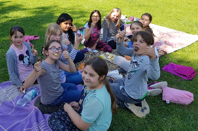 Die Sozialschüler Lotta und Lisanne hatten sich wieder total Mühe gegeben und mit ihren Kindern ein tolles selbst organisiertes Picknick veranstaltet.