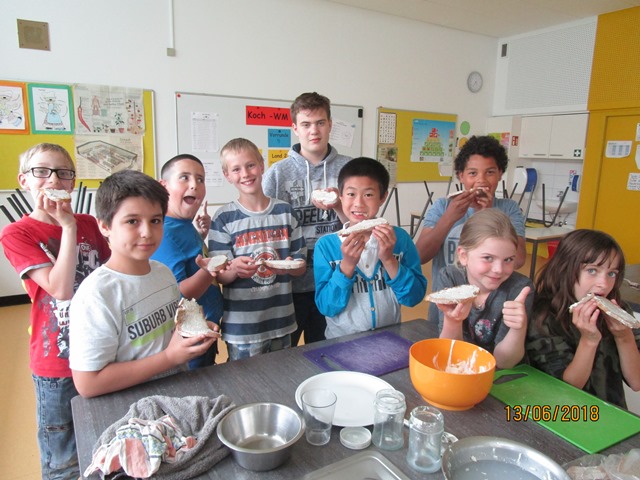 In der Kinderküche wurde aus Schlagsahne selbst Butter hergestellt. Und alle fanden sie lecker. Den Magnetismus hautnah erleben konnten die Kinder in der AG Experimente. Durch verschiedene Hilfsmittel wurden Magnetfelder sichtbar gemacht und die Magnetkraft der verschiedenen Magnete ausprobiert. Und warum leuchtet eine Glühbirne? Auch das konnten die Kinder selbst herausfinden.