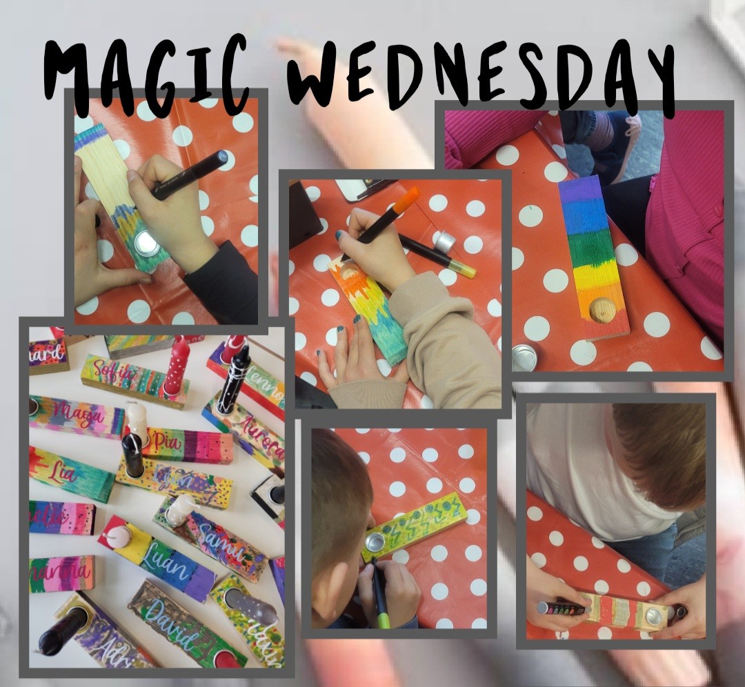 Knapp 26 Kinder waren dabei und durften wunderschöne Kerzenhalter gestalten. Das Highlight waren die geplotteten Namen, die jedes Kind am Ende anbringen durfte. Mit einem alkoholfreien Cocktail und einem Apfelsnack, wurde der dieswöchige Magic Wednesday beendet. Das Ganztagsteam freu sich schon auf den nächsten Mittwoch."