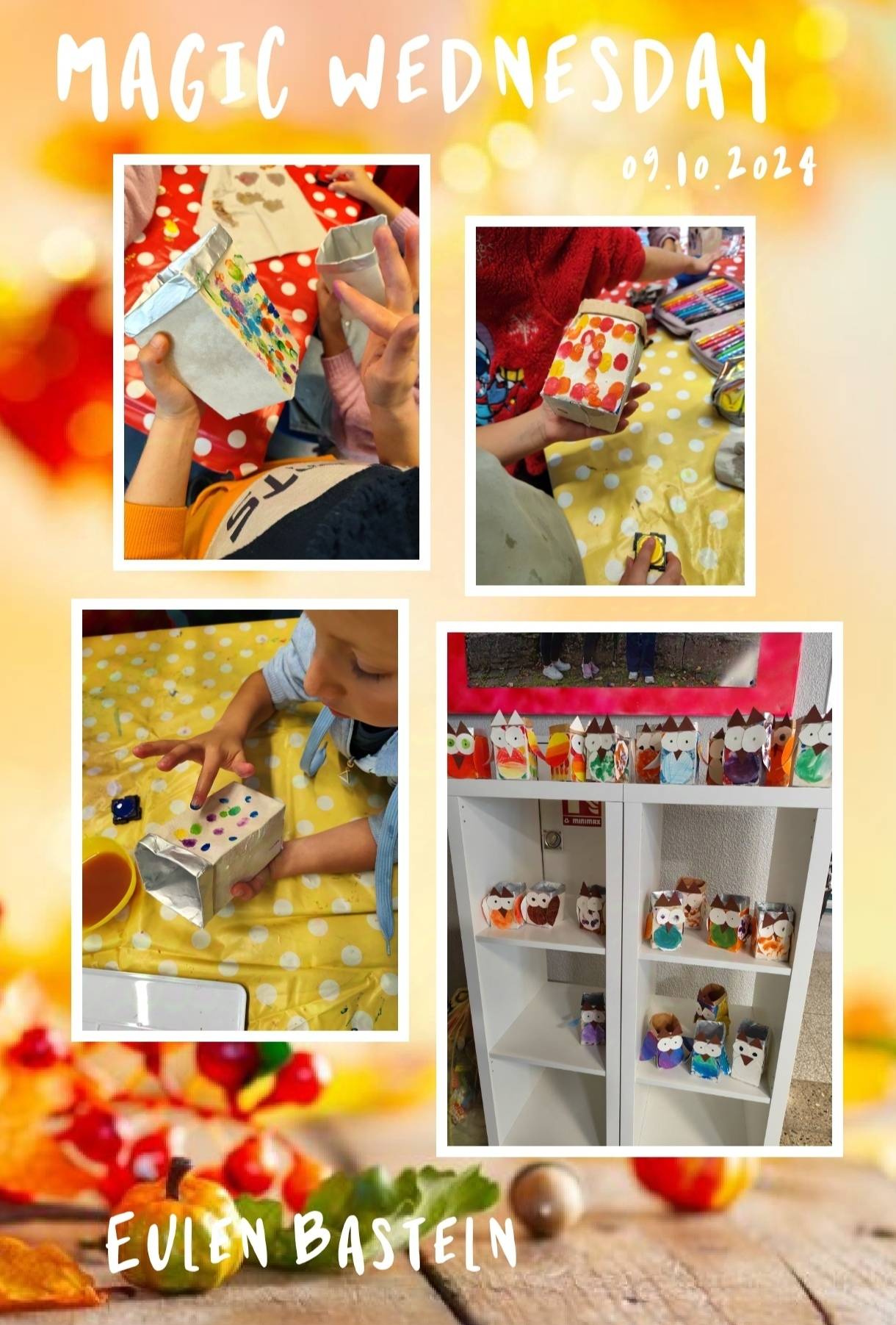 So wurde bei einer der Mittwochsaktionen beispielsweise die Türe des Ganztags herbstlich gestaltet, bei einer anderen Aktion wurde eine tolle Eule gebastelt.