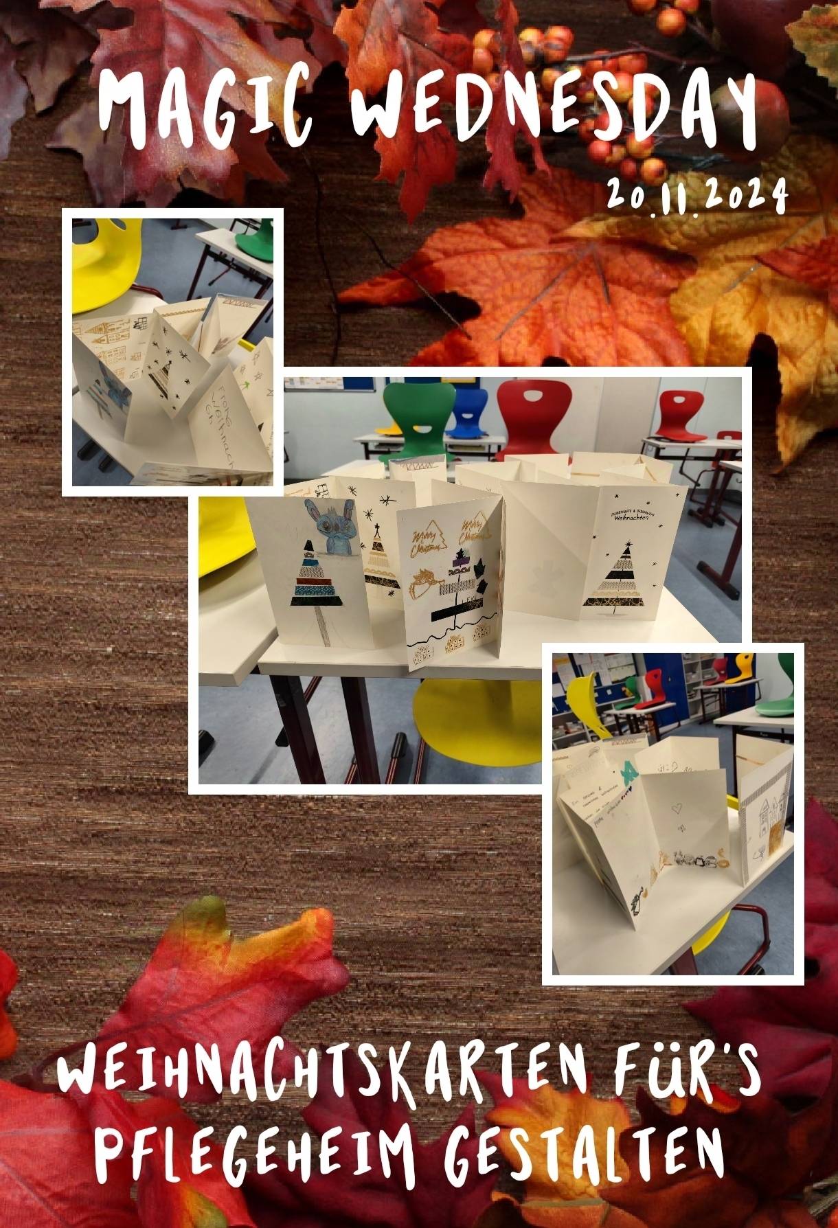 Am 20.11.24 wurde es wieder kreativ. Die Kinder durften an diesem Magic Wednesday schöne Weihnachtskarten für das Pflegeheim gestalten. Die Schülerinnen und Schüler nebst den Mitarbeiterinnen der Betreuung hoffen, dass sich die Bewohner des Heims darüber freuen werden.