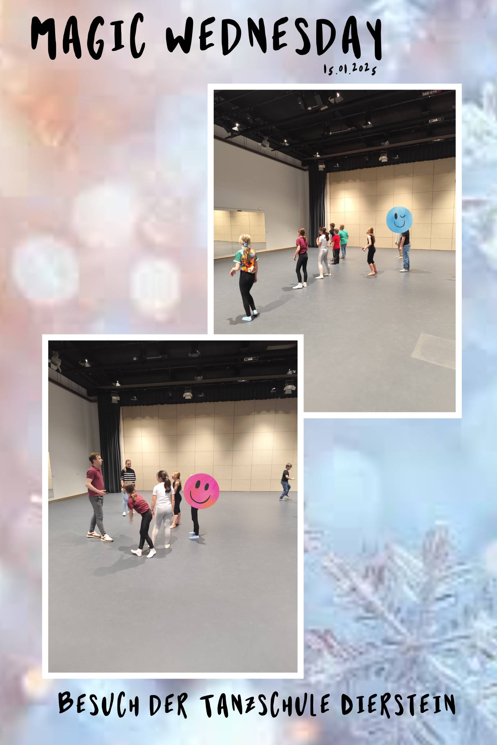 In der Folgewoche gab es für die angemeldeten Magic Wednesday Kinder ein großes Highlight. Die Tanzschule Dierstein kam an die GWRS und verbrachte einen tollen Nachmittag mit den Schülerinnen und Schülern. Um 15:15 Uhr begann die erste Gruppe damit, einen Tanz einzustudieren, während die zweite Gruppe einen gemeinsamen Snack vorbereitete, denn tanzen macht hungrig. Nachdem beide Gruppen dem Ganztagsteam ihren Tanz präsentiert hatten, ging es nach dem Verzehr des eigens geschnittenen Obstes nach Hause.