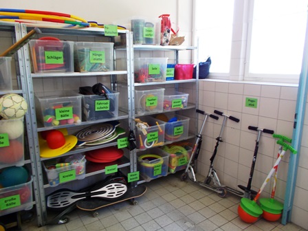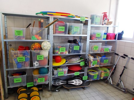Endlich ist es soweit – die vielen Spielsachen der Betreuung haben genug Platz. Dank dem Umbau der alten Mädchentoilette können die zahlreichen – auch neuen – Spielsachen ordentlich untergebracht werden.