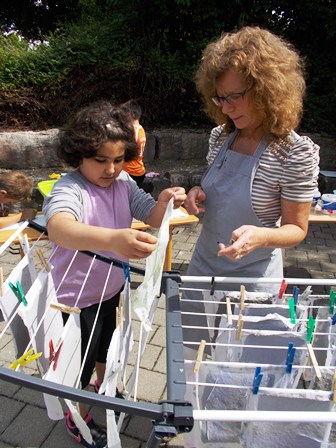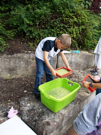 Da das Papierschöpfen während den Projekttagen ein voller Erfolg war, hat sich die Ganztagesbetreuung ebenfalls von dieser Faszination anstecken lassen.