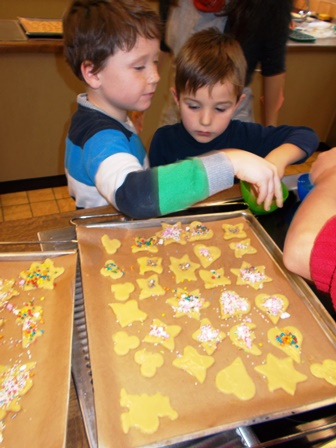 Während die eine Gruppe fleißig Ausstecherle gemacht hat, saß die andere Gruppe gemütlich beisammen, hat das Rezept für die Ausstecherle besprochen und eine Weihnachtsgeschichte angehört. Anschließend wurden die Gruppen getauscht. Nach dem fleißigen Backen wurden die Leckereien noch probiert und dank der kleinen Bäcker steht der Weihnachtsfeier bei der nächsten Mittwochsaktion nichts mehr im Wege.