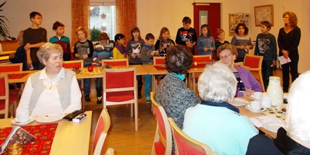 Nach einer nachdenklichen Weihnachtsgeschichte und einem einstudierten Gedicht der Kinder saßen wir mit den Seniorinnen und Senioren gemütlich beisammen und ließen uns die selbstgebackenen Bretle der Back-AG schmecken. Zum Abschluss wurde ein kleines, selbst gebasteltes Geschenk von unseren Kindern übereicht.