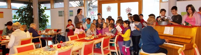 Am vergangenen Montag waren 33 Kinder der Ganztagesbetreuung zu Besuch in der Seniorenwohnanlage in Villingendorf. Gemeinsam mit Herr Daniel, welcher uns am Klavier begleitete, wurden diverse Weihnachtslieder zum Besten gegeben.