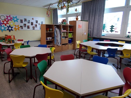 Nun haben die Schülerinnen und Schüler die Möglichkeit auf altersgerechten Stühlen die Frühbetreuung mit dem Angebot eines gesunden Frühstücks wahrzunehmen.