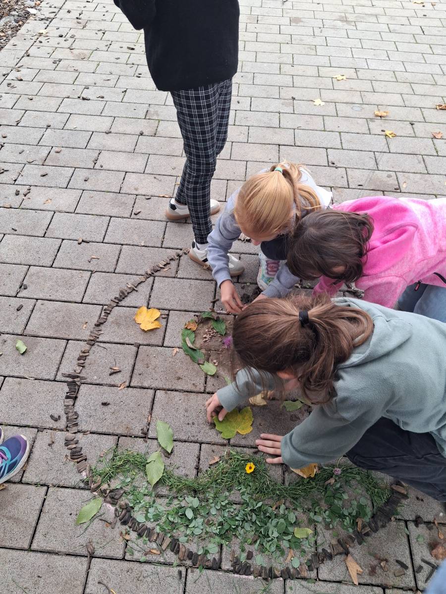 Bei herrlichem Herbstwetter haben die Kinder der Klasse 3b sich im Kunstunterricht mit der Richtung „Landart“ beschäftigt. Nachdem sie zunächst in die Grundidee eingeführt wurden und einige künstlerische Beispiele betrachtet haben, ging es selbst ans Werk. Auf dem Schulgelände wurden Naturmaterialien in wunderschöne Mandalas, Mobiles, Bodenbilder verwandelt und kleine Mauerlücken zu Kunstwerken. Es wurde sehr konzentriert und begeistert gearbeitet und die eigenen Werke noch am nächsten Tag bestaunt ….