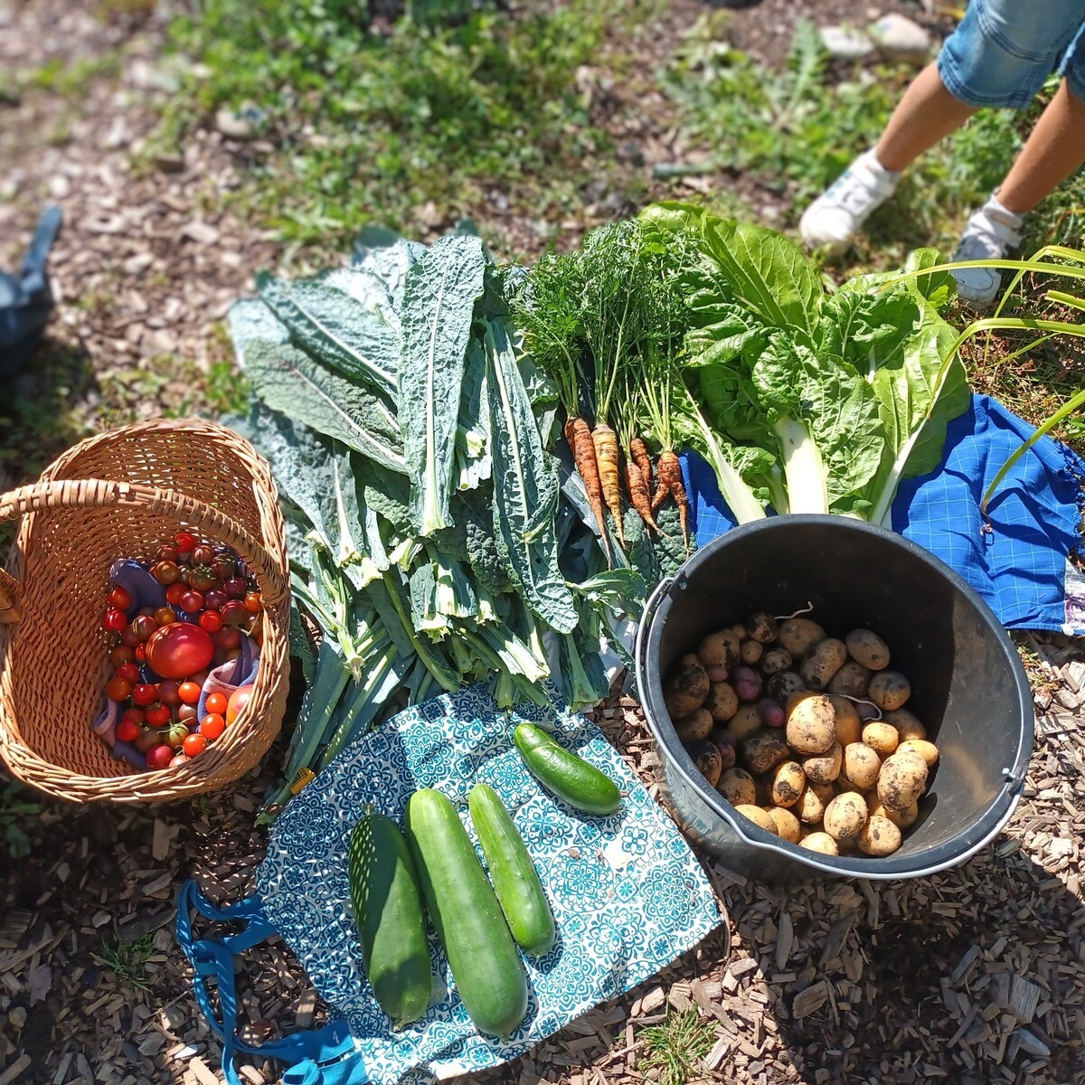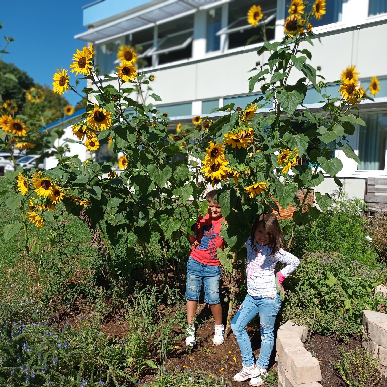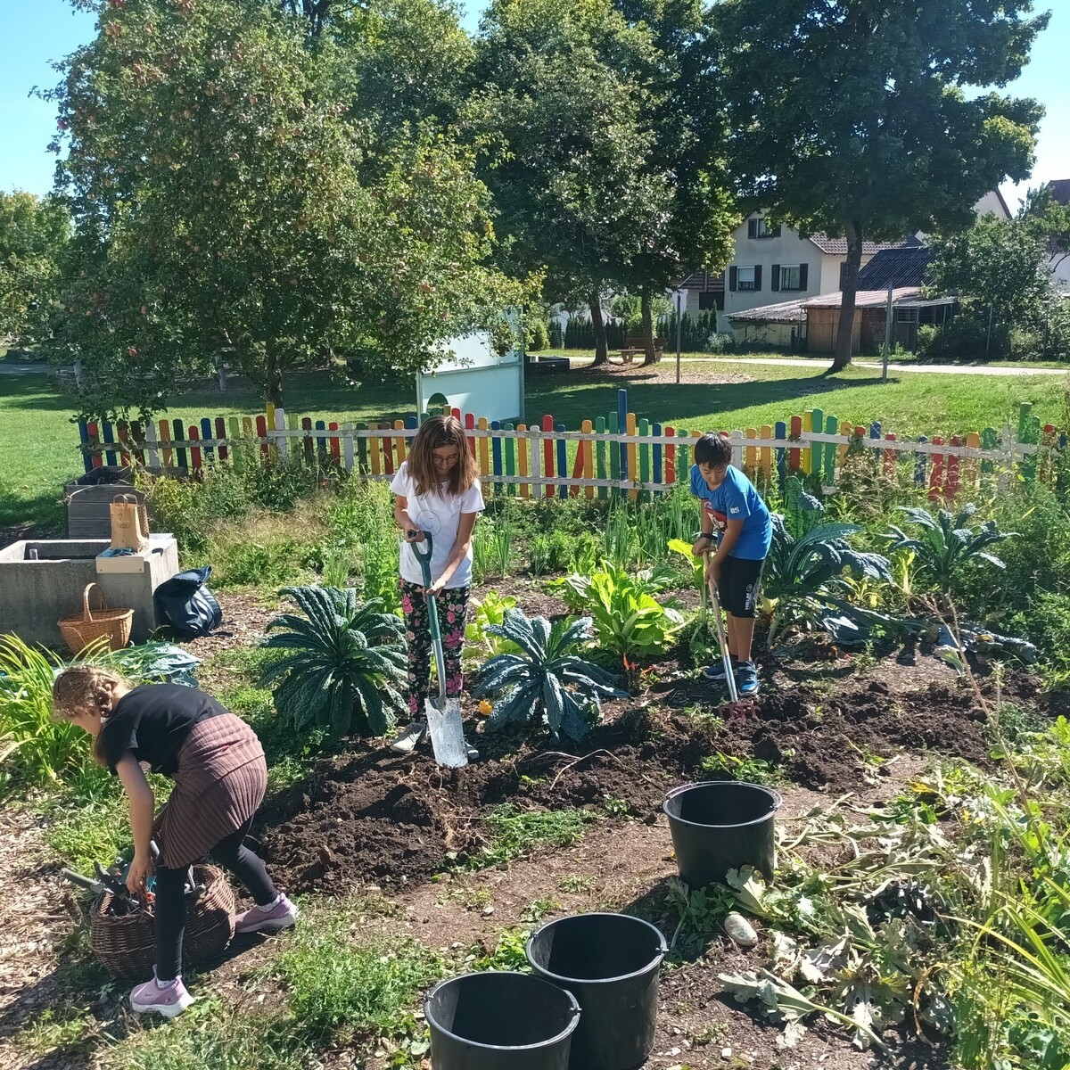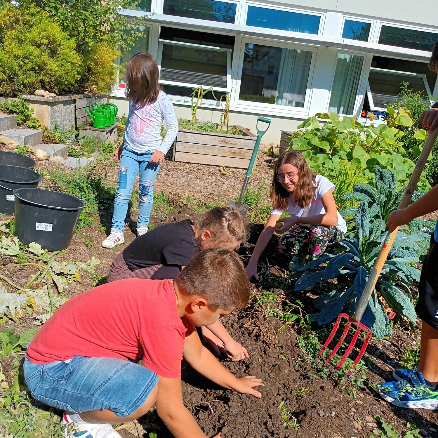 Heute haben Kinder im Ganztag z.B. eigenhändig und mit viel Motivation Kartoffeln ausgebuddelt, Tomaten in vielen Farben und Größen gepflückt, Palmkohl geerntet, die ersten Möhren geknabbert …