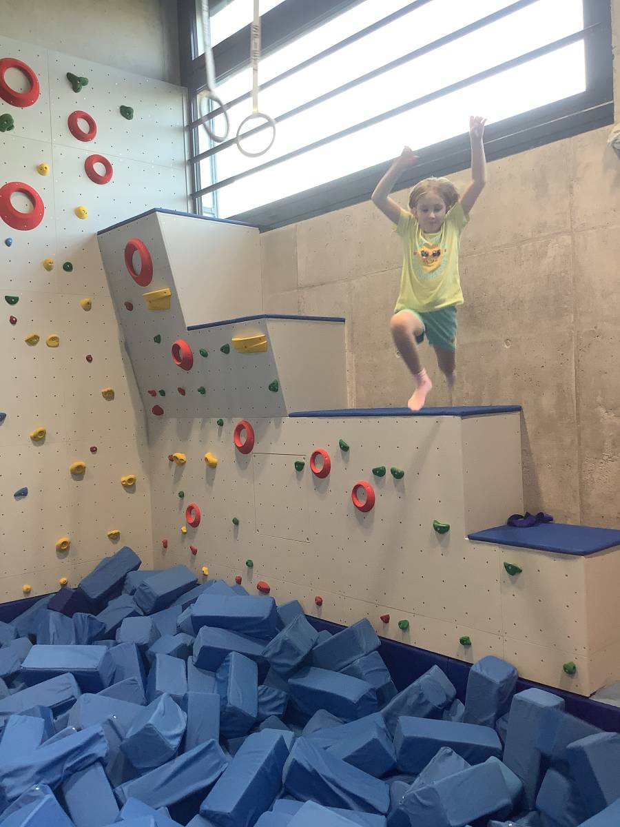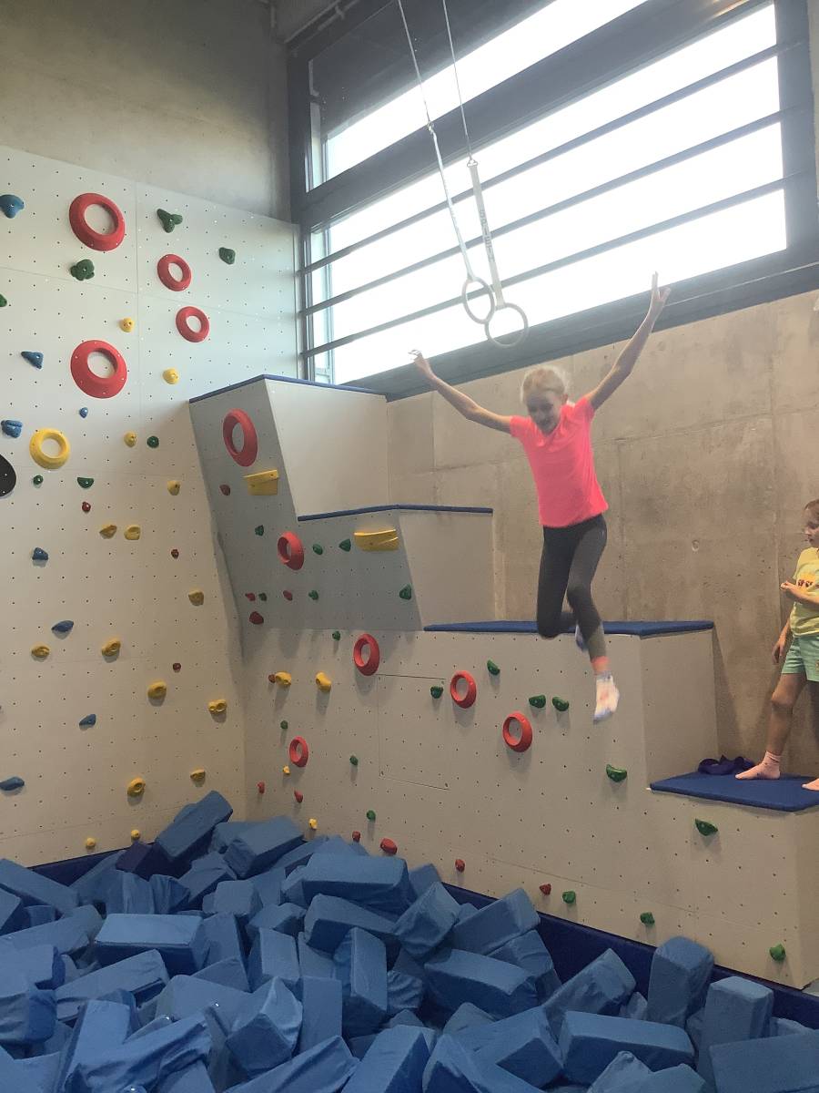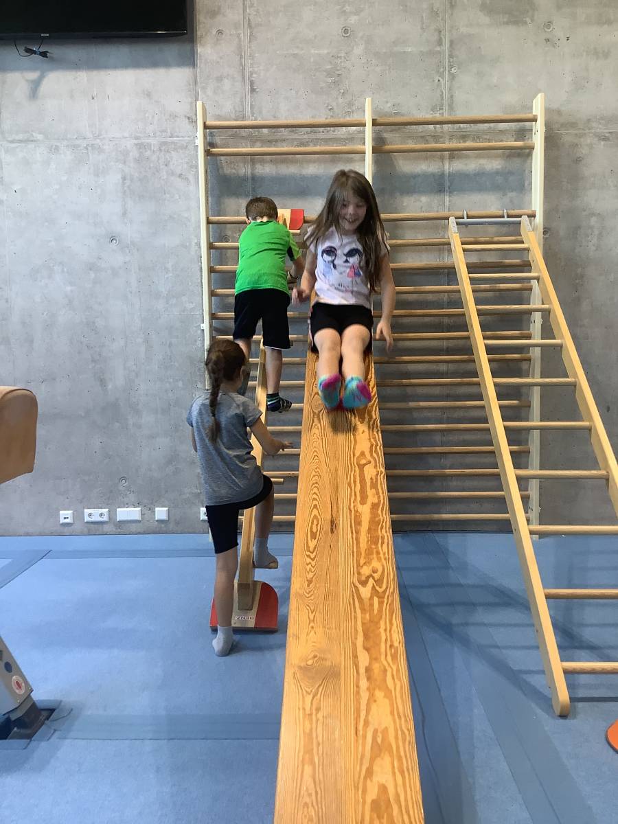 Im Fach TOP dürfen die Dritt- und Viertklässler die Turn- und Bewegungslandschaft des SV Villingendorf besuchen. Mit den verschiedenen Geräten werden Bewegungsparcours durchlaufen oder unterschiedlich schwierige Turnübungen geübt. Auch die Freude an Bewegung soll dabei nicht zu kurz kommen.