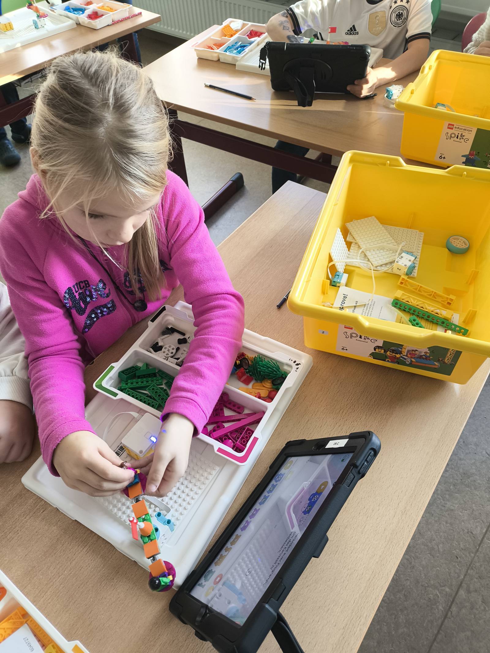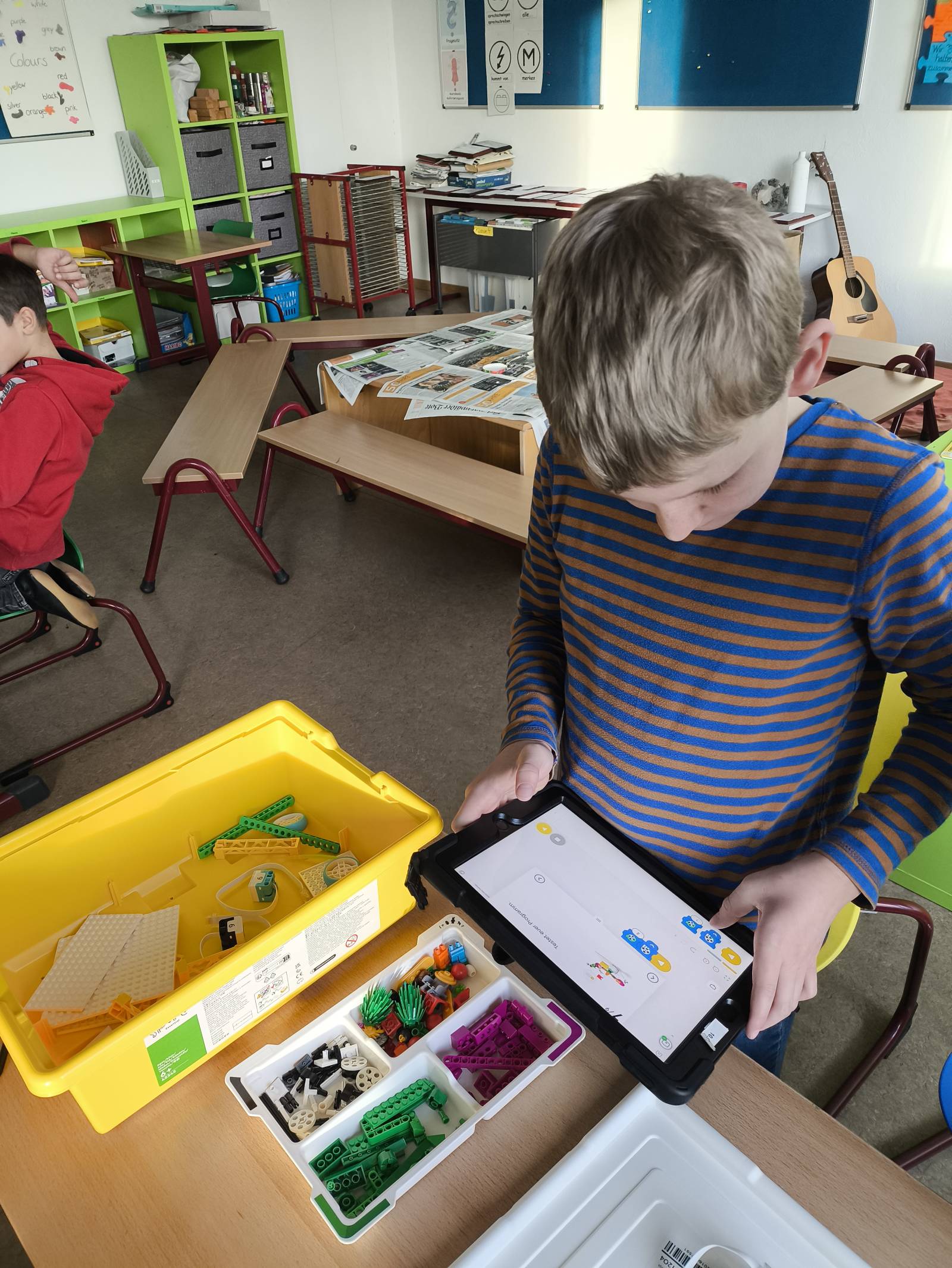 Am 18.11.24 durften im Robotik-TOP (Themenorientierte Projekte) die ersten Kinder mit den LEGO-Robotik-Kisten arbeiten. Die Schülerinnen und Schüler hatten alle viel Spaß beim Bauen und Programmieren von Karussellen, Riesenrädern und anderen Fahrgeschäften für die LEGO-Kinder.