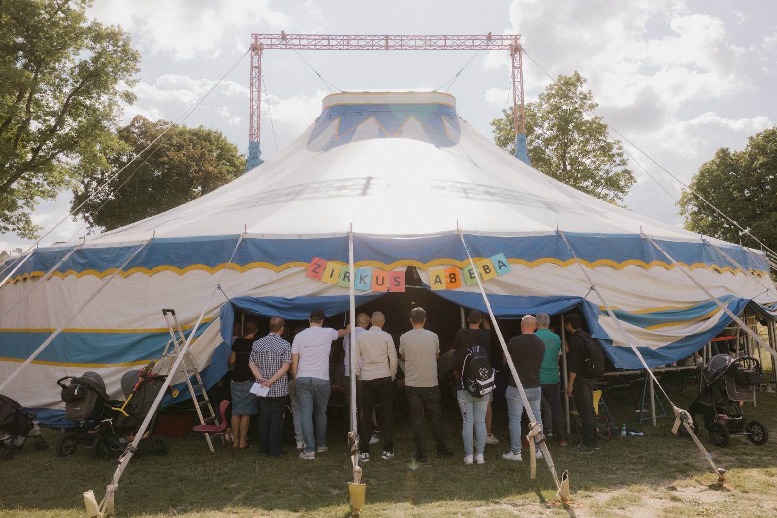 Auch für das leibliche Wohl war an diesem Freitagnachmittag bestens gesorgt. Förderverein und Elternbeirat zeigten wieder einmal ihr herausragendes Engagement und vervollständigten das kulinarische Angebot der Klassen 7 bis 9, sodass es nicht nur im, sondern auch um das Zirkuszelt herum alles gab, was ein richtiger Zirkus so zu bieten hat. Gekühlte Getränke, eine Kuchentheke mit Kaffee und Eis, Slush-Eis, Popcorn, Crêpes und Waffeln durften ebenso wenig fehlen, wie Grillwurst und Pommes. Der ortsansässige Albverein wartete mit seinem selbstgebauten Weinwagen auf und rundete das Gesamtbild ab.