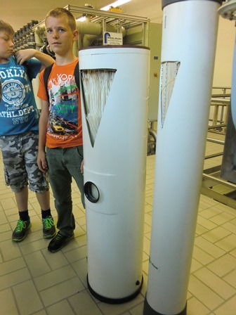 Wie verhält es sich aber dann mit dem Leitungswasser? Wo kommt unser Trinkwasser her? Um diese Fragen zu beantworten, ging es am folgenden Tag zum Wasserwerk Neckarburg. Dort erklärte uns Herr Merz, wie die Wasserversorgung der Gemeinden rund um Dietingen sichergestellt wird. Dafür nutzt man im Neckartal vier eingefasste Quellen, die sich aus dem Regenwasser vom Hochwald über Villingendorf bis zum Neckartal speisen. Die Aufbereitung des Quellwassers erfolgt zunächst über Ultrafiltration, einem physikalischen Membrantrennverfahren nach dem Niederdruckprinzip. Hier werden kleinste Verunreinigungen entfernt sowie Viren und Bakterien eliminiert. Danach durchläuft das Wasser die aus zwei Druckkesseln bestehende Aktivkohlefilteranlage. Diese dient der Entnahme von organischen Spurenstoffen und Pestiziden. Erst im Anschluss erreicht das so aufbereitete Quellwasser den Reinwasserbehälter. Geringe Mengen zugesetzten Chlors schützen das Wasser jetzt vor bakteriologischen Veränderungen. Die Verbraucher erreicht schließlich eine Mischung aus Bodensee- und Quellwasser, damit der Kalkgehalt unterhalb der vorgeschriebenen Grenzen bleibt.