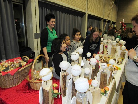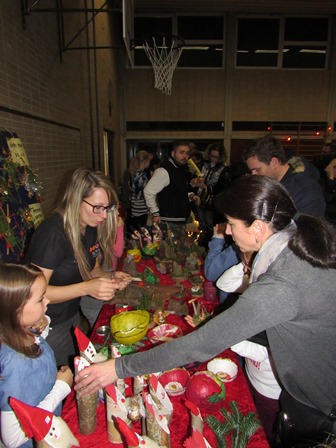 Hier wurde von allen Klassenstufen von 1 – 10, dem Team der Ganztagesbetreuung und dem Elternbeirat wunderschöne Basteleien, kreative Geschenke und kulinarische Leckereien geboten. Eltern und Gäste nutzen den Markt zum Austausch bei Punsch oder Glühwein, während die 9. Klasse mehrfach Würstchen und Wecken nachordern musste, bis es hier und bei vielen anderen Ständen hieß: „ausverkauft!“ Ein Spendenflohmarkt der SMV rundete die Veranstaltung ab. Sachspenden wurden hier für den Sozialfund der Schule verkauft, der sozial bedürftigen Kindern zu Gute kommen soll.