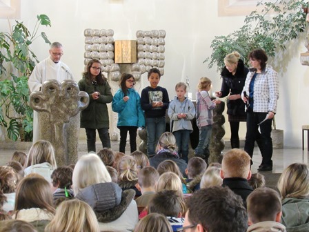 Unter Leitung von Pfarrerin Esther Kuhn-Luz und Pastoralreferenten Klaus Bangert fand am letzten Schultag vor den Ferien der traditionelle Weihnachtsgottesdienst statt. Die Parallelen der Weihnachtsgeschichte mit dem aktuellen Thema von Flucht und Vertreibung in der Welt wurden unter Beteiligung der Religionsfachschaft kindgerecht vorbereitet und verschafften der Schulgemeinschaft einen besinnlichen Ausklang des Jahres.