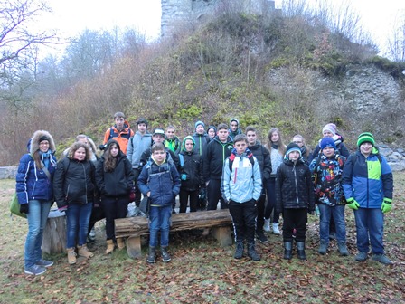 Alle Jahre wieder bildet sich am Wintersporttag eine Gruppe aus bewegungsfreudigen Schülern und Lehrern, die wandernd unsere nähere Umgebung erkundet, um bei der Burgruine Herrenzimmern schließlich die Grillsaison zu eröffnen. Warme und wetterfeste Kleidung, ordentliche Schuhe, trockenes Holz, alte Zeitungen und unterschiedliches Grillgut gehören dabei zu den grundlegenden Ausrüstungsgegenständen. Wer jetzt mutmaßt, dass die Hälfte der Teilnehmer bestimmt nichts dergleichen mitbringt, liegt falsch – haben wir es doch mit wahren Profis zu tun: die Wandergruppe besteht in der Regel mehrheitlich aus „Wiederholungstätern“, die sich mit großem Spaß zusammen auf den Weg machen.