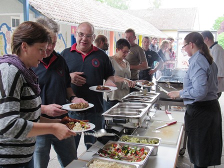Auch im Namen des Schulträgers in Person von Bürgermeister Karl-Heinz Bucher galt der Dank der Schule den engagierten Helfern und Unterstützern, die sich hernach bei einem weiteren großen Freund der Grund- und Werkrealschule laben konnte: Die Landmetzgerei Digeser richtete ein leckeres Grillbuffet aus, während die Irlandklasse für die Getränkebar verantwortlich zeichnete. Gute Gespräche in geselliger Runde rundeten das Helferfest ab.