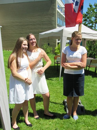 Das Team England mit Annika-Rebecca und Erika Felert sowie Esther Zelenika servierte ein britisches Dreigänge-Menü mit knackigem Feldsalat mit gebratenem Speck und Birnen sowie Avocadostreifen, den so typischen Fish ´n Chips, gar in einer Zeitung serviert und Apple Crumble mit Vanilleeis.