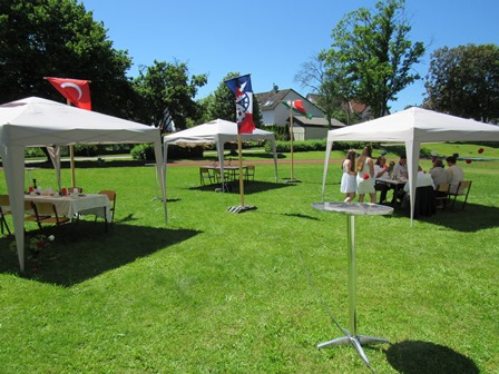 In den vergangenen Wochen fand, ganz ähnlich zur Fußballeuropameisterschaft in Frankreich, ein Kochturnier an der Villingendorfer Schule statt. Schülerinnen und Schüler der Klassenstufen 9 und 10 waren in Dreierteams in die Rolle europäischer Kochnationen geschlüpft und in mehreren Ausscheidungsrunden gegeneinander angetreten. Mit den Teams aus England, Ungarn und der Türkei standen nun die besten drei Mannschaften des mit 21 Mannschaften gestarteten Turniers im Finale. Bei herrlichem Sonnenschein fand dieses in Pavillons auf der Wiese vor der Schulküche statt.
