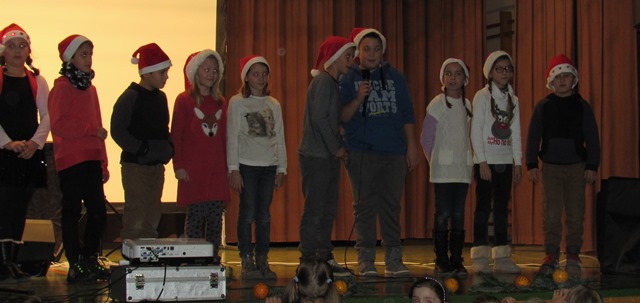Für Besinnlichkeit und Stimmung sorgten die beiden 2. Klassen mit dem Glockenspiel „Blinke, blinke, kleiner Stern“, Kinder der 1. und 4. Klassen mit Gedichtvorträgen, ein Projektchor von 5.-7.-Klässlern und dem „Duo Magic“. Bianca und Michael Flatt unterhielten die Adventsmarkt volle zwei Stunden mit weihnachtlichen Melodien.