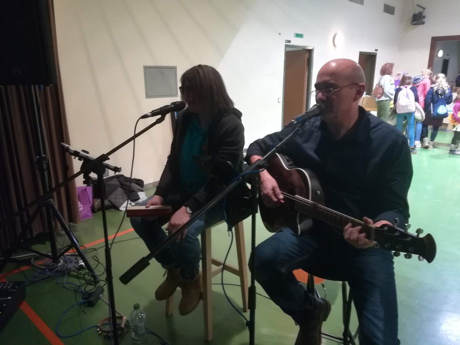 Auch war die Tin Whistle der aktuellen Irlandklasse zu vernehmen und die Erzieherin im Ganztag, Sylvia Grathwohl bereicherte im Duett mit ihrem Mann durch atmosphärische Beiträge.