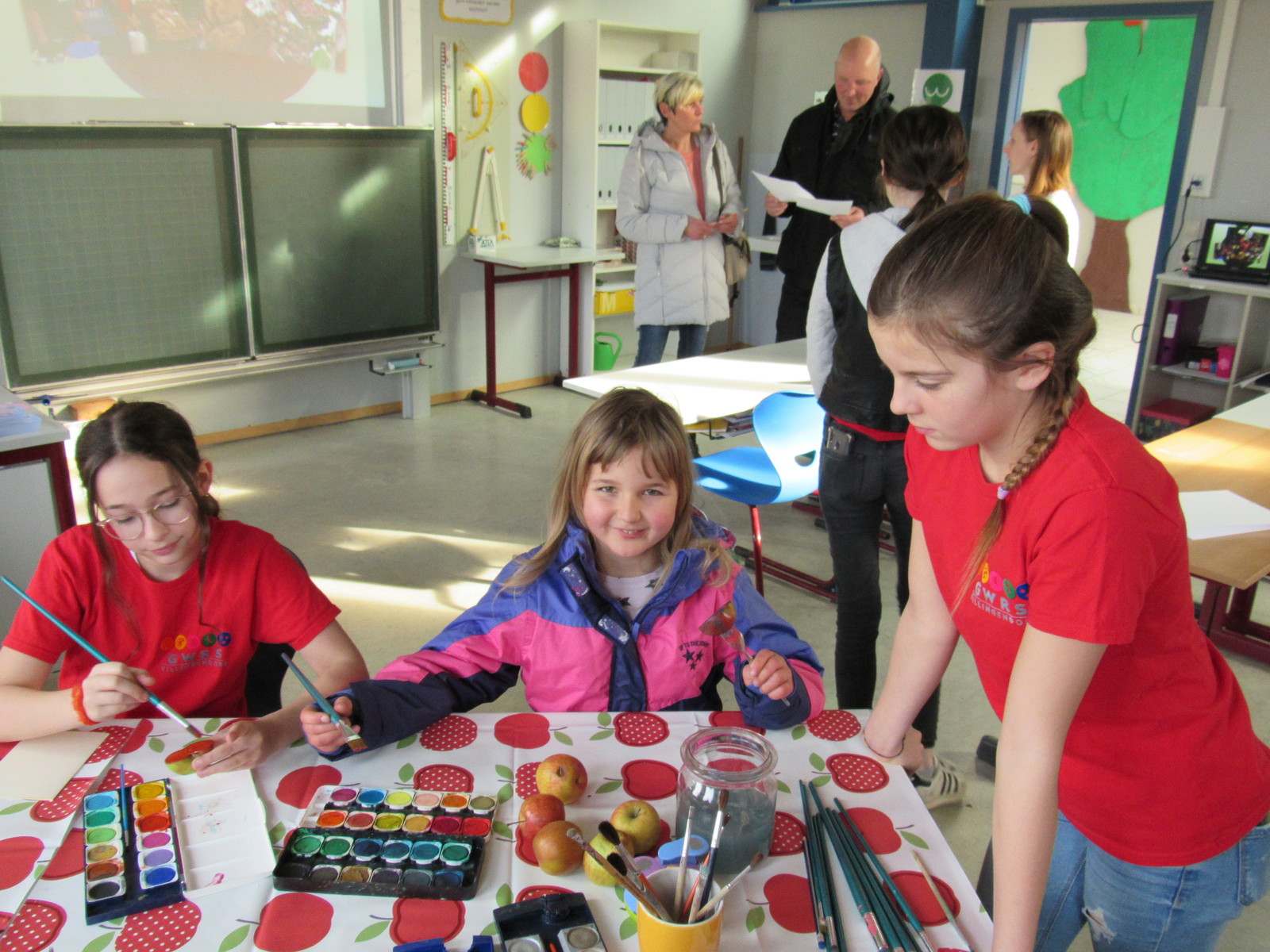 Zahlreiche Familien aus der Region informierten sich über das Bildungsangebot der Werkrealschule. Klassenlehrerin Claudia Seifried und der Referendarin Selin Öncül samt Eltern- und Schülervertretern aus der aktuellen Klassenstufe 5 stellten ihre eindrucksvollen Unterrichtsprojekte vor, während die Sechstklässler mit den Lehrkräften Sabine Gauß und Flurina Zeller ihre Apfelklasse erläuterten. Auf großes Interesse stieß auch die Irlandklasse mit ihrer Schülergenossenschaft unter Leitung von Stefan Bihl und Eugenia Remisch und dem Ziel einer unvergesslichen Reise auf die „Grüne Insel“. Großen Zulauf hatte auch die Schulküche, wo Kathrin Schwarz und Lisa Binkowski mit den Kindern Obstküchle im Akkord produzierten.