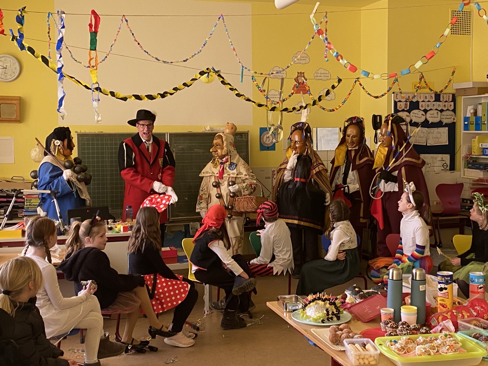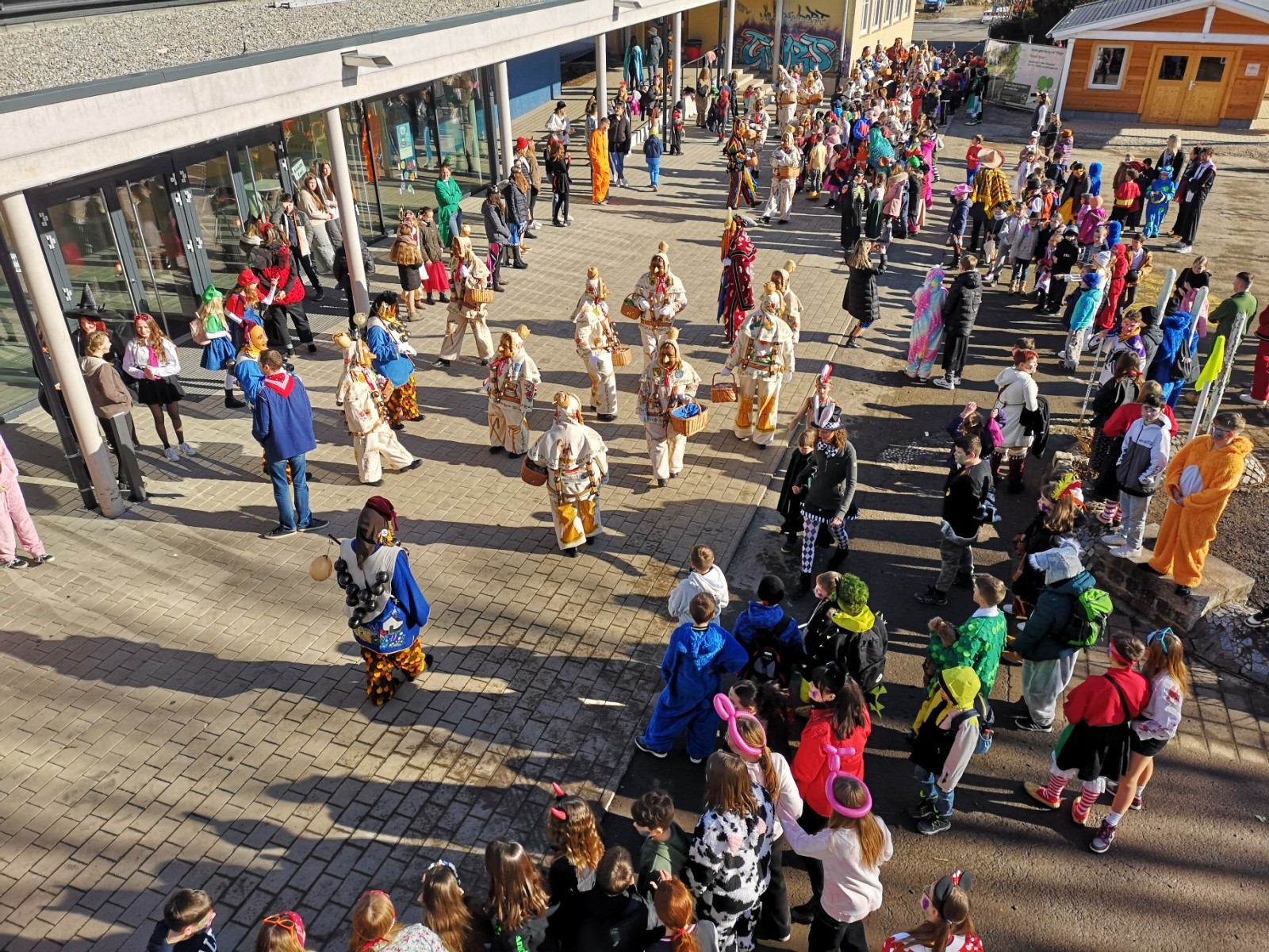Närrisch ging es am "Schmotzigen" an der GWRS zu. Von Klein bis Groß wurde in den Klassen gefeiert. Die Habermuasler von der Villingendorfer Narrenzunft besuchten die Grundschulklassen und erläuterten Brauchtum und Kleidle. Schließlich traf sich die ganze Schulgemeinschaft auf dem Schulhof mit den Narren, wo Bürgermeister Marcus Türk die Kinder und Jugendlichen von der Schule befreite.