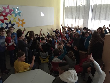 Trotz mangelnder Schutzbrillen konnten die Schülerinnen und Schüler der GWRS Villingendorf das seltene Naturschauspiel Sonnenfinsternis live und ohne Gefahren über den Beamer beobachten. Mehrere Sender übertrugen die Sonnenfinsternis per Livestream über das Internet, die in einzelnen Klassenzimmern gezeigt wurden. Die Schülerinnen und Schüler hatten dabei die Möglichkeit, Fragen zu stellen, um das Schauspiel besser zu verstehen. Die Klassen 3-6 informierten sich zusätzlich am Tag zuvor bei einem Ausflug in das Planetarium nach Stuttgart über die Hintergründe einer Sonnenfinsternis.