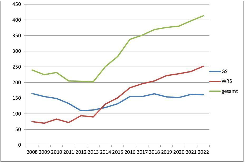 Fünftklässler entscheiden sich für uns, wenn sie eher praktisch begabt sind, handlungsorientierte Unterrichtskonzepte in klaren Strukturen schätzen und auf einem grundlegenden Niveau des Lernens nicht überfordert werden wollen. Besonders die kleinen Klassen (im Durschnitt 20 Schülerinnen und Schüler pro Klasse) und die einzigartigen Projekte, wie das Apfelprojekt und die Irlandklasse sowie die zielgerichtete Ausgestaltung der Übergänge in die duale Ausbildung, aber auch auf weiterführende Schulen, ziehen die Schülerinnen und Schüler an. So haben sich die Schülerzahlen der GWRS seit 2013 von rund 200 auf nunmehr über 400 enorm entwickelt und zeugen von der großen Akzeptanz des Bildungsangebots in der Region.