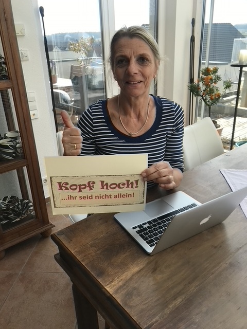 "Liebe Grüße aus dem Homeoffice von mir. Ihr fehlt mir alle sehr und deshalb freue ich mich um so mehr, wenn wir uns wieder alle gesund treffen können. Sollten Probleme oder Sonstiges auftreten, könnt ihr mich natürlich weiterhin jederzeit kontaktieren". Eure Claudia Seifried