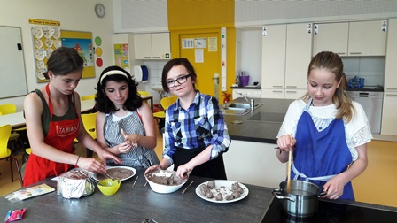 Ganz im Zeichen der aktuellen Fußball-Europameisterschaft in Frankreich, recherchierte die Klasse 6 eifrig im Hauswirtschafts-Unterricht nach „Fußball-Rezepten“, die sie anschließend selbst nachkochte und backte.