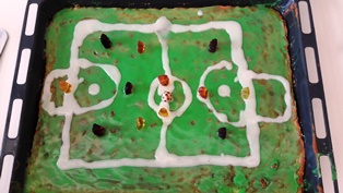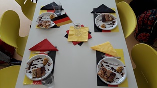 Die einzelnen Schülergruppen entschieden sich hierbei für Blechkuchen im Fußballfeld-Format und Desserts in den Farben Deutschlands.