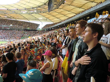 Gemeinsam mit 20 Lehrerinnen und Lehrern besuchten sie das Eröffnungsspiel der Fußball-U19-Europameisterschaft zwischen Deutschland und Italien. Das Stadion war nahezu ausverkauft und so wurde dieses Spiel mit knapp 55.000 Kindern, Jugendlichen und Erwachsenen aus ganz Deutschland zu einem für viele Schüler einmaligen Erlebnis in schwarz-rot-goldenen Farben.