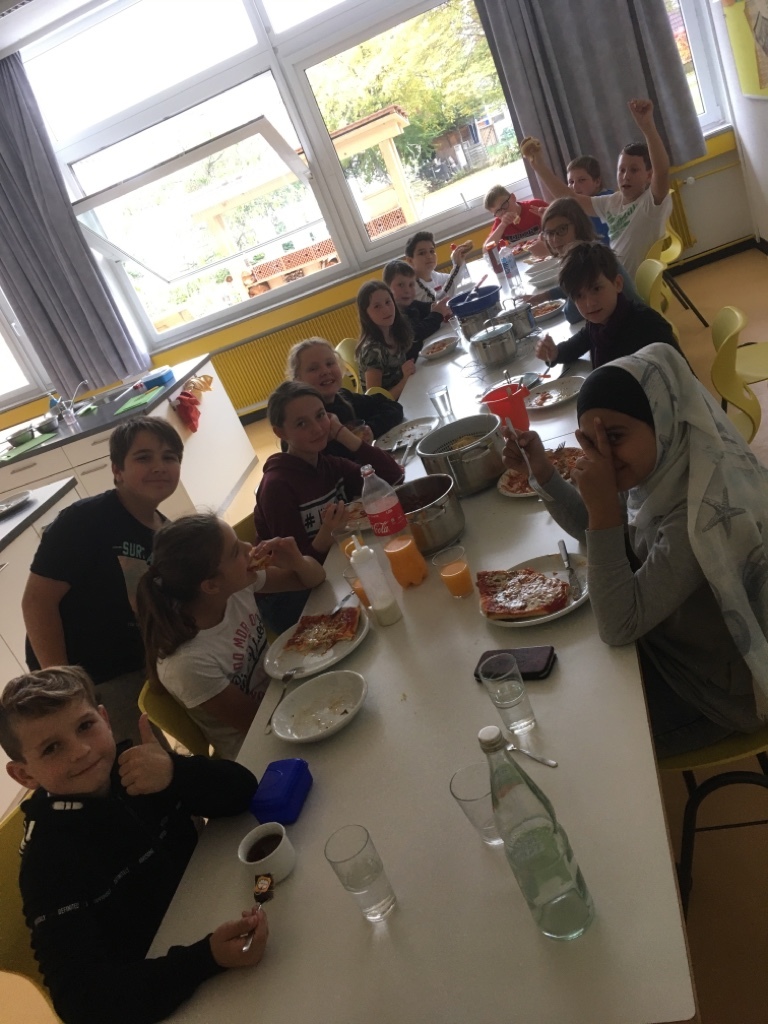 Auch in diesem Schuljahr ist die Schulküche, auch dank Verbindungslehrerin Claudia Seifried, wieder sehr gut frequentiert durch Werkrealschüler, die gerne zusammen kochen und die Mittagspause kulinarisch verbringen.