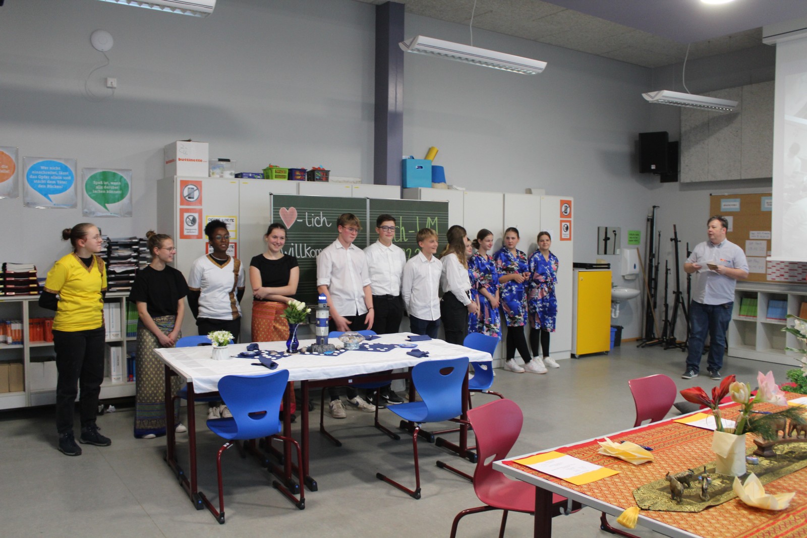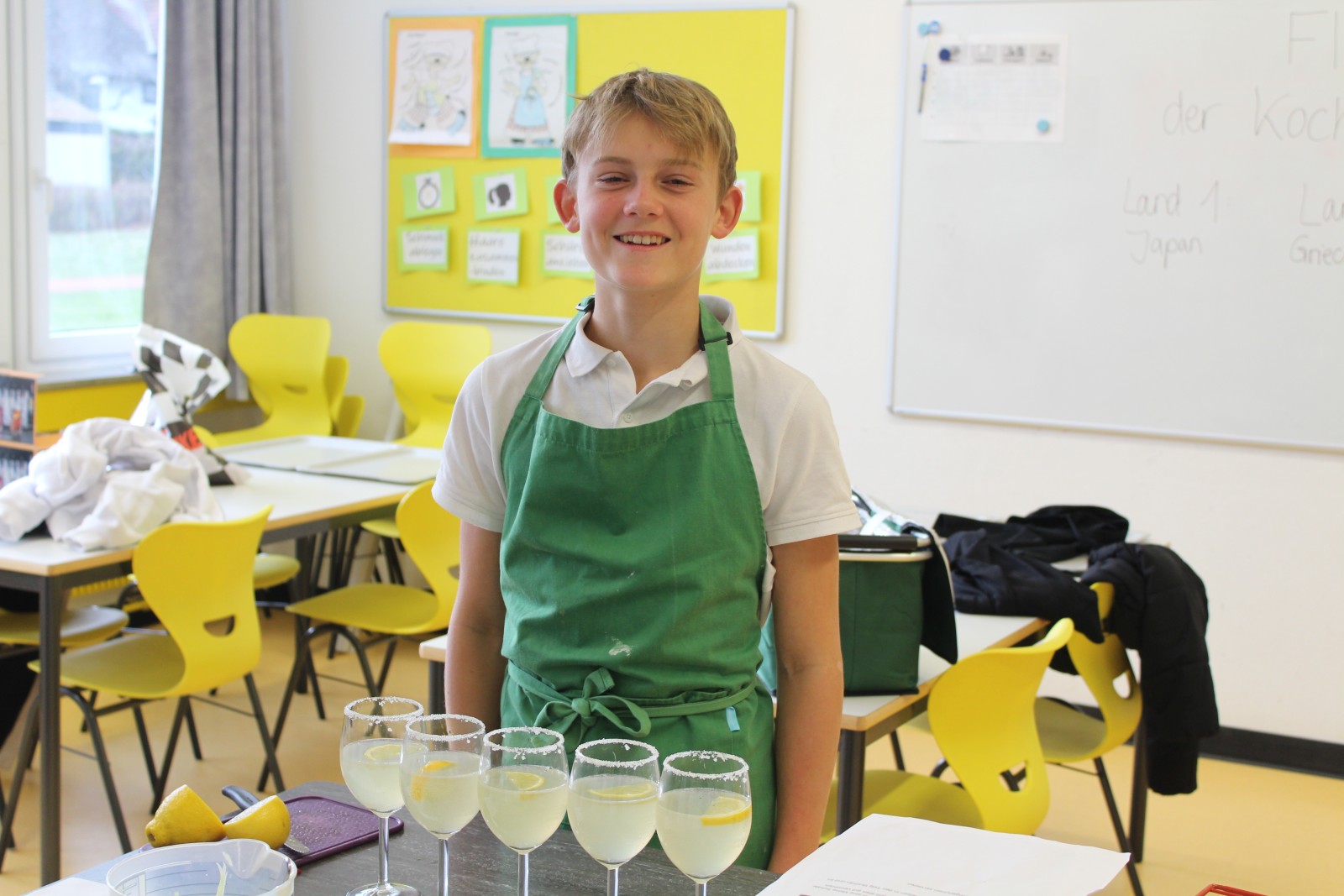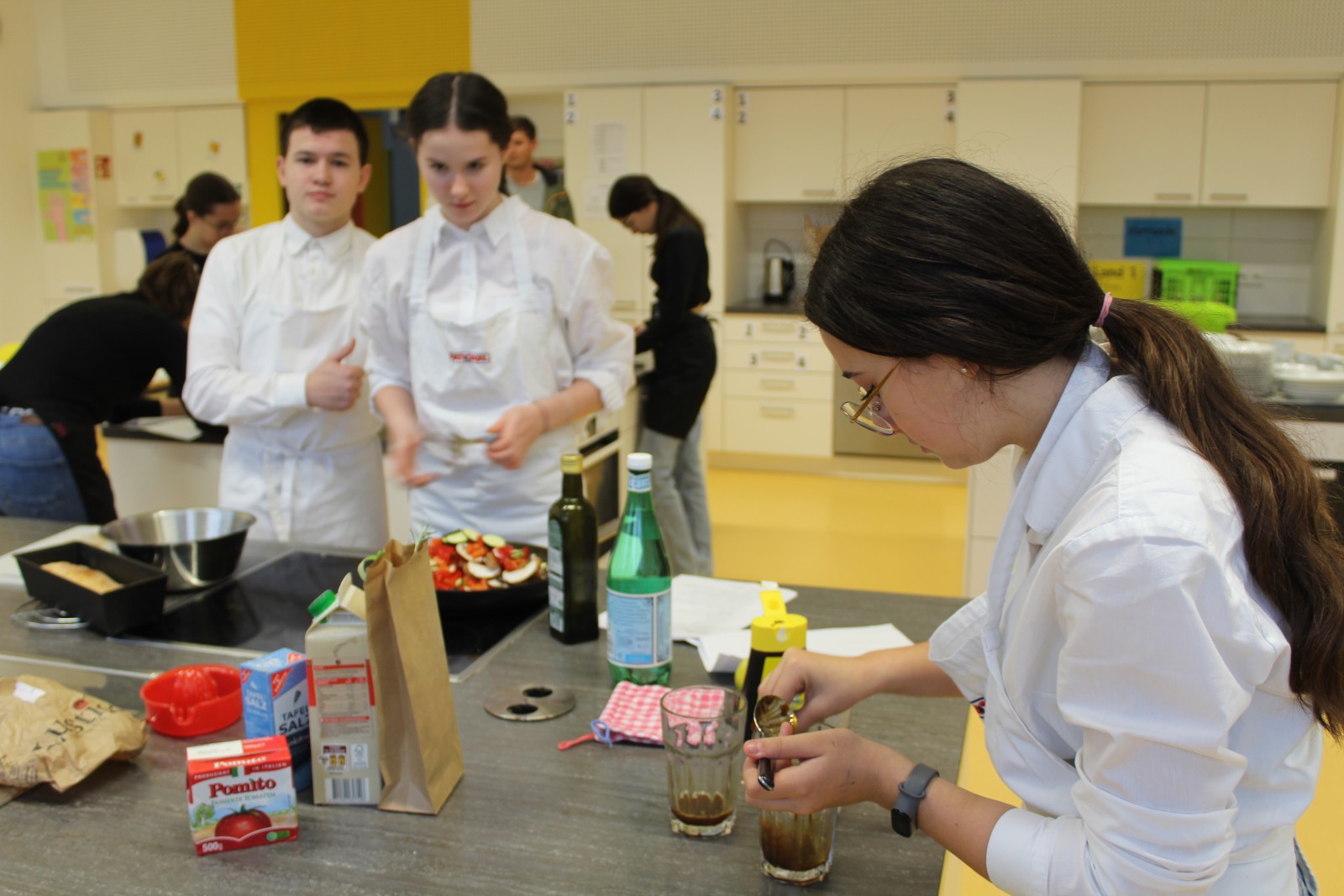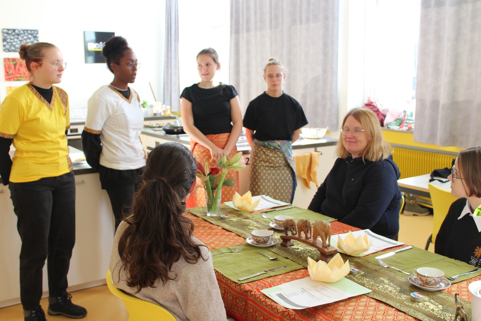 Im Vorfeld entscheiden die Teams mitsamt ihren Coaches, welches Land sie vertreten. Absolut zufrieden mit ihrer Wahl war das griechische Schulteam. Mit dem „leckeren griechischen Essen“ erreichten sie wie die Teams aus Thailand und Japan das Finale. An den Tischen warteten fünf Jurymitglieder. Darunter mit Pit Lang aus der Krone in Villingendorf und Wilhelm Maier vom Pflug in Rottweil zwei Profis. „Bei mir werdet ihr es schwer haben“, warnte Lang das Team Thailand. „Aber ich freu mich riesig, ich bin Thailandfan“. Enttäuscht wurde er nicht. Das Team heimste für seine Sommerrolle als Vorspeise, Karaage zur Hauptspeise und Kokosquark zum Nachtisch viel Lob ein und punktete mit Wissen zum Land und Kultur.
