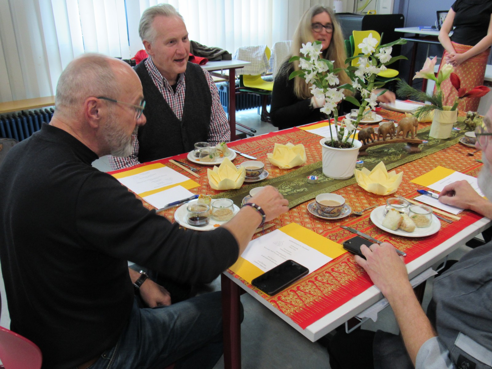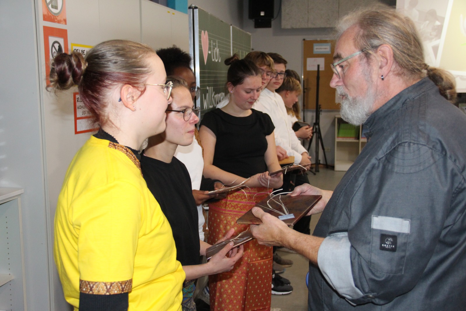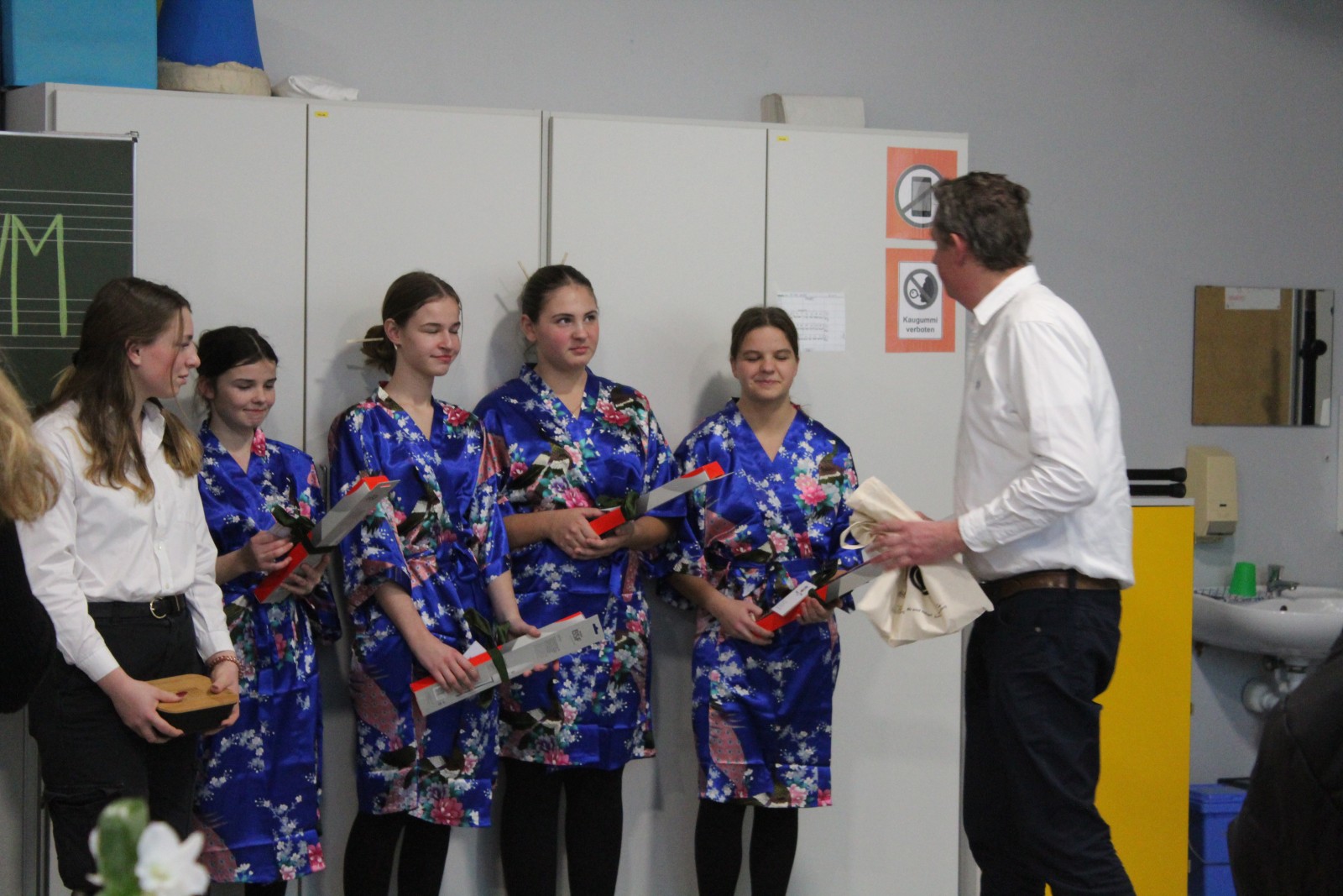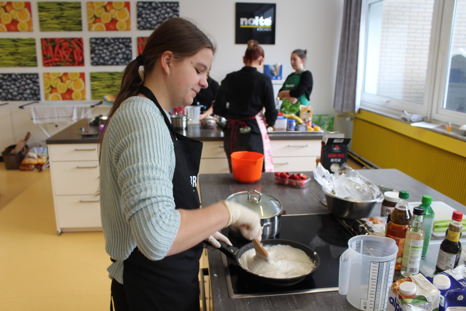 Im Vorfeld entscheiden die Teams mitsamt ihren Coaches, welches Land sie vertreten. Absolut zufrieden mit ihrer Wahl war das griechische Schulteam. Mit dem „leckeren griechischen Essen“ erreichten sie wie die Teams aus Thailand und Japan das Finale. An den Tischen warteten fünf Jurymitglieder. Darunter mit Pit Lang aus der Krone in Villingendorf und Wilhelm Maier vom Pflug in Rottweil zwei Profis. „Bei mir werdet ihr es schwer haben“, warnte Lang das Team Thailand. „Aber ich freu mich riesig, ich bin Thailandfan“. Enttäuscht wurde er nicht. Das Team heimste für seine Sommerrolle als Vorspeise, Karaage zur Hauptspeise und Kokosquark zum Nachtisch viel Lob ein und punktete mit Wissen zum Land und Kultur.