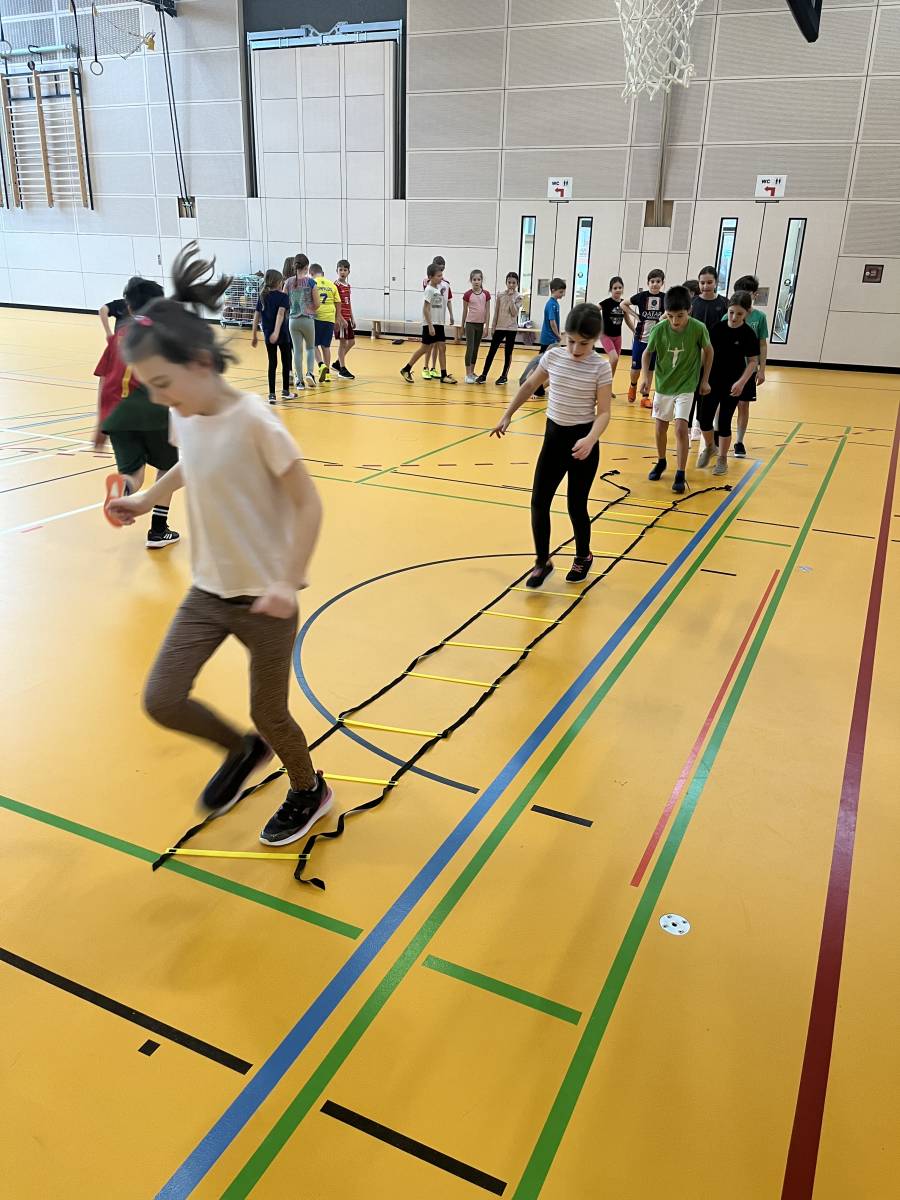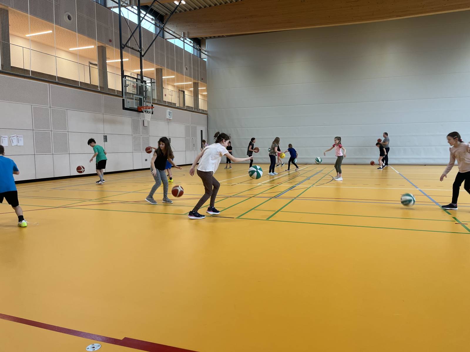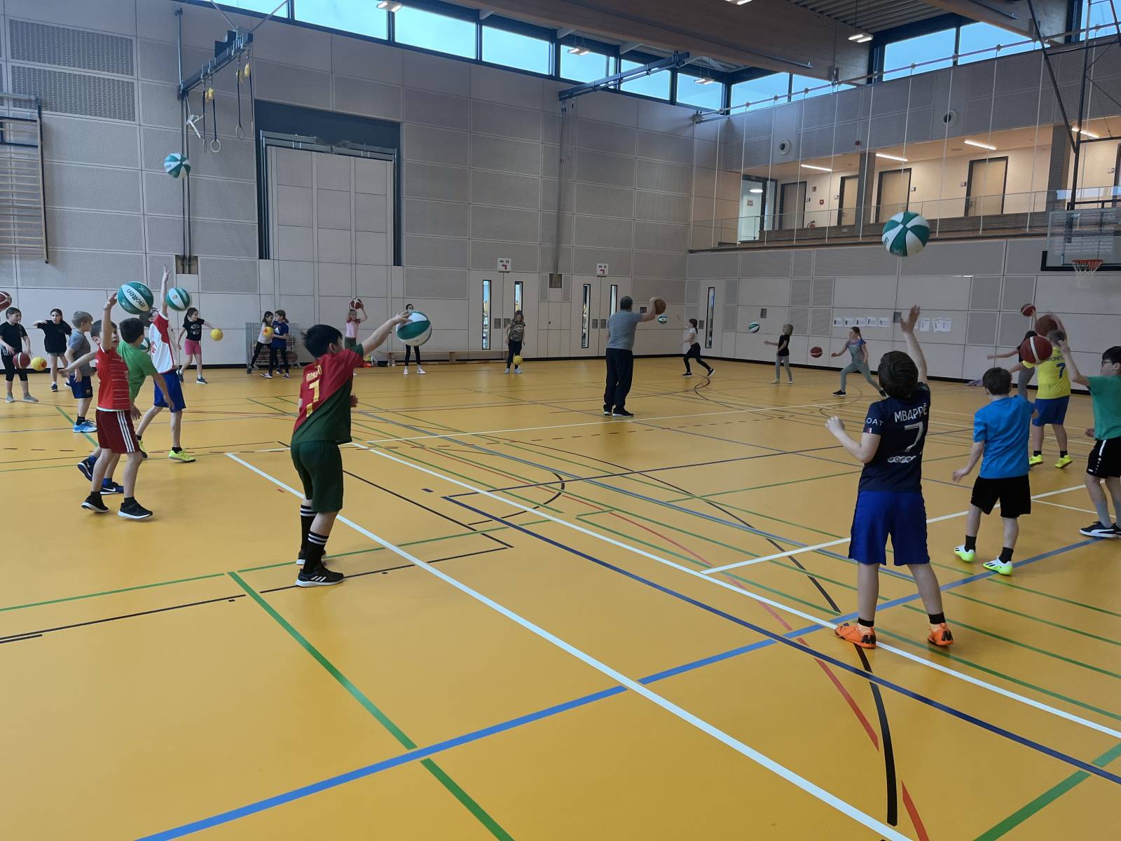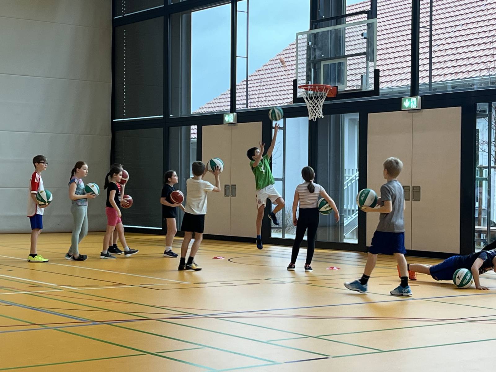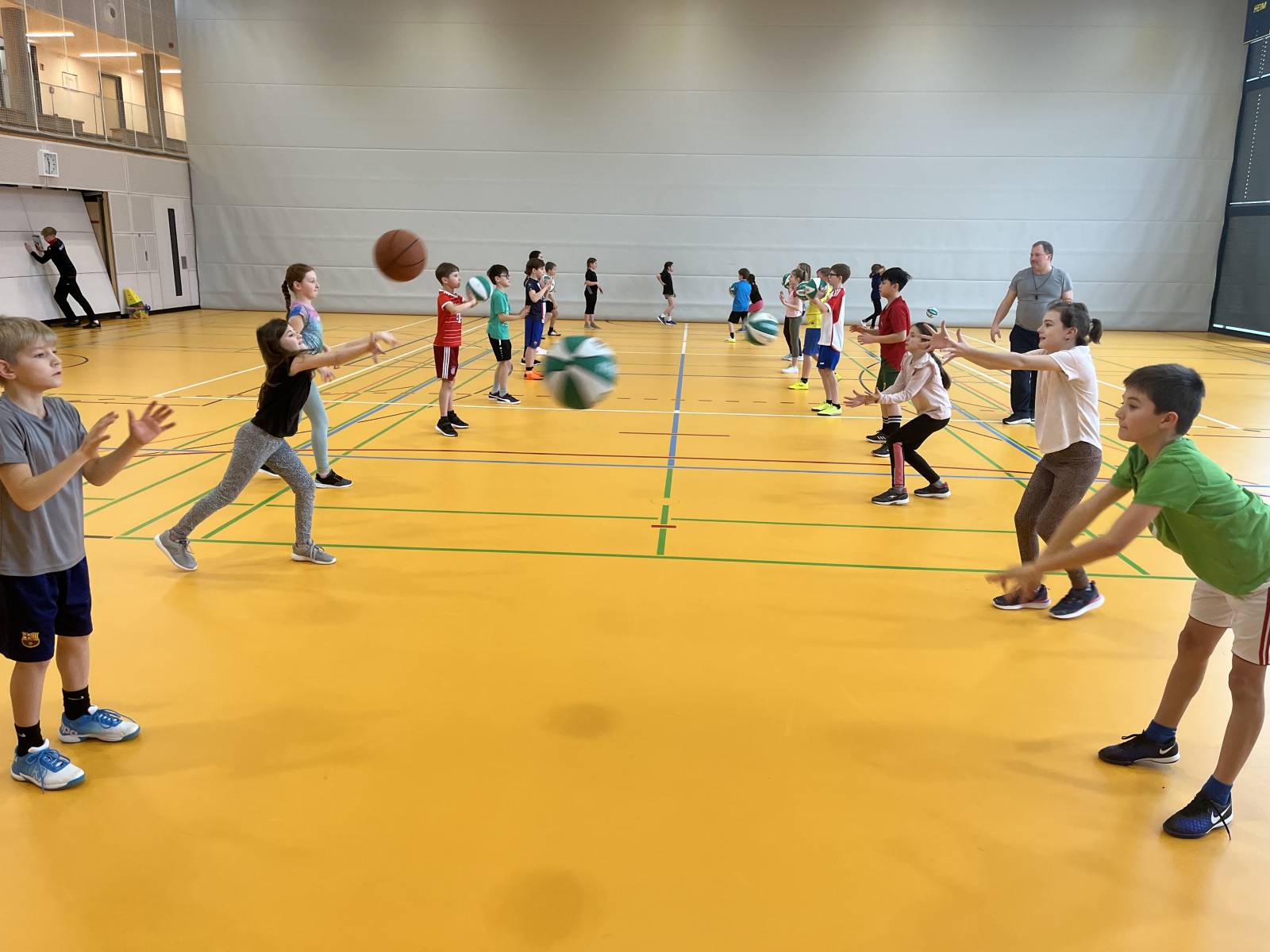 Am Donnerstag, 18.01.24 fand an unserer Grundschule ein Basketball-Aktionstag statt. Es war eine tolle Möglichkeit, den Kindern Spaß zu bereiten und Ihnen gleichzeitig die Grundlagen des Sports näherzubringen. Dabei wurden verschiedene Stationen durchlaufen, an denen die Kinder ihre Wurf-, Pass- und Dribbeltechniken verbessern konnten. Mit Hilfe verschiedener Spiele wurde ihre Geschicklichkeit und ihre Teamfähigkeit unter Beweis gestellt. Es war schön zu sehen, wie viel Spaß die Kinder hatten und wie ihr Interesse am Basketballsport geweckt werden konnte. Sie konnten nicht nur ihre sportlichen Fähigkeiten entwickeln, sondern auch wichtige soziale Kompetenzen wie Teamwork, Fairplay und Kommunikation erlernen. Insgesamt war es ein schöner Basketball-Tag, welcher bereichernde Erfahrungen für die Kinder brachte, bei der sie Freude am Sport hatten und gleichzeitig ihre Fähigkeiten weiterentwickeln konnten.