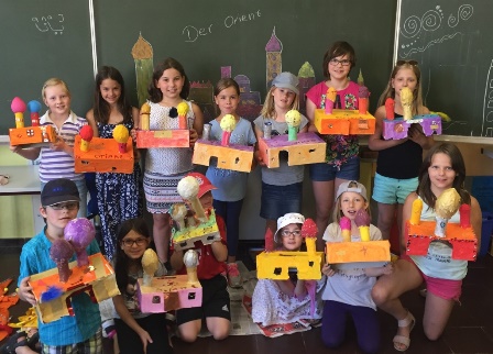 Wir durften orientalische Häuser und Hausschuhe basteln, unsere Namen auf arabisch schreiben und Windlichter gestalten.