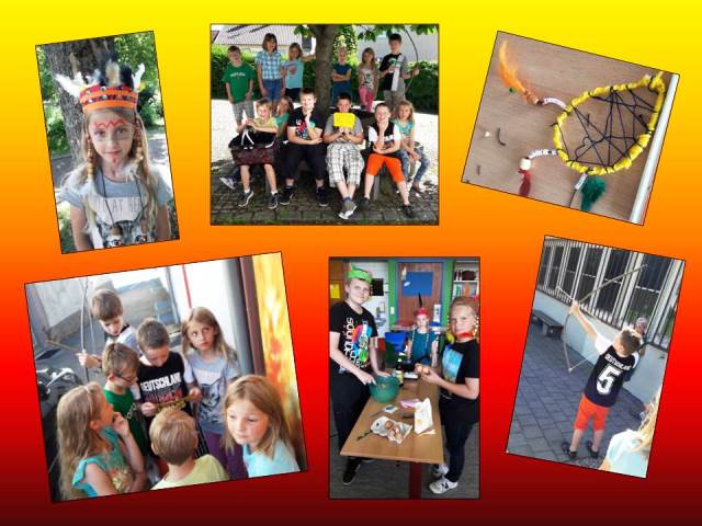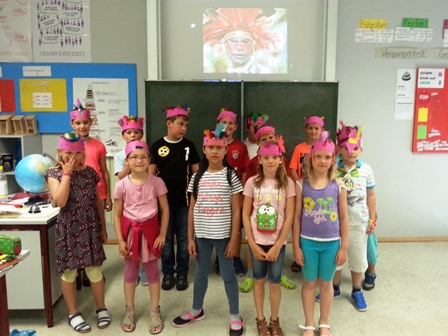 Die Indianerkinder haben während der Projekttage erfahren, wie einst die alten Indianer lebten und wie ihr Leben heute aussieht. So begaben sie sich auf eine spannende Spurensuche, lernten Musik und Kultur der „Rothäuter“ kennen, stellten indianischen Maisfladen her, bastelten Schmuck und schminkten sich wie mutige Krieger, lernten mit Pfeil und Bogen umzugehen und vieles mehr.