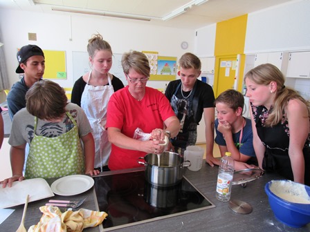 In der Projektgruppe „In der Küche um die Welt“ beschäftigten sich einige Schüler/innen aus Klasse 7 und 8 mit dem Essen aus unterschiedlichen Ländern. Von Süßspeisen aus Syrien, über die türkische Küche bis hin zu einer spanischen Nachspeise. Es war sehr lecker und hat allen viel Spaß gemacht!