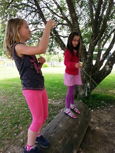 In Amerika erzählte ein Indianerkind die Geschichte des Traumfängers. Die Kinder suchten sich Stöcke auf dem Schulgelände und knüpften ihren eigenen Traumfänger.